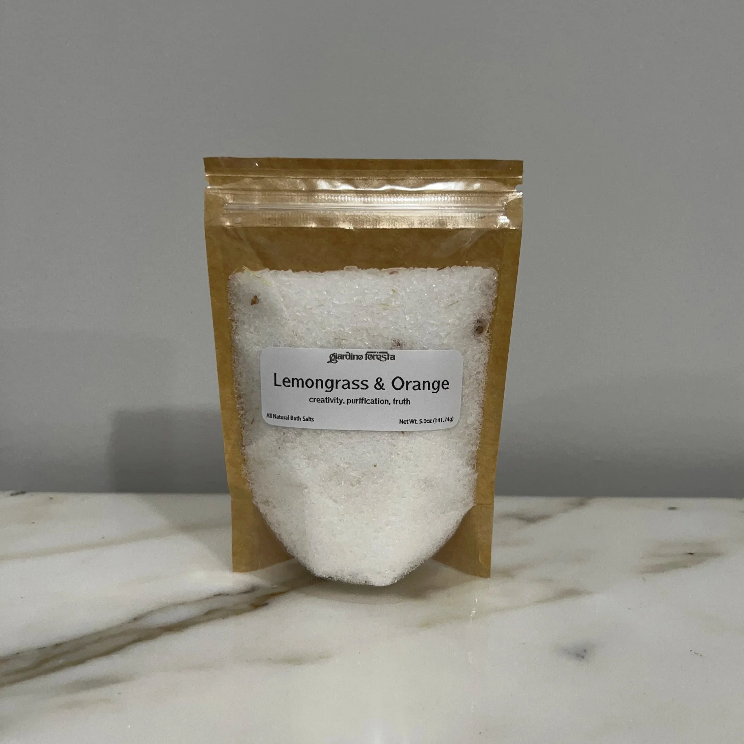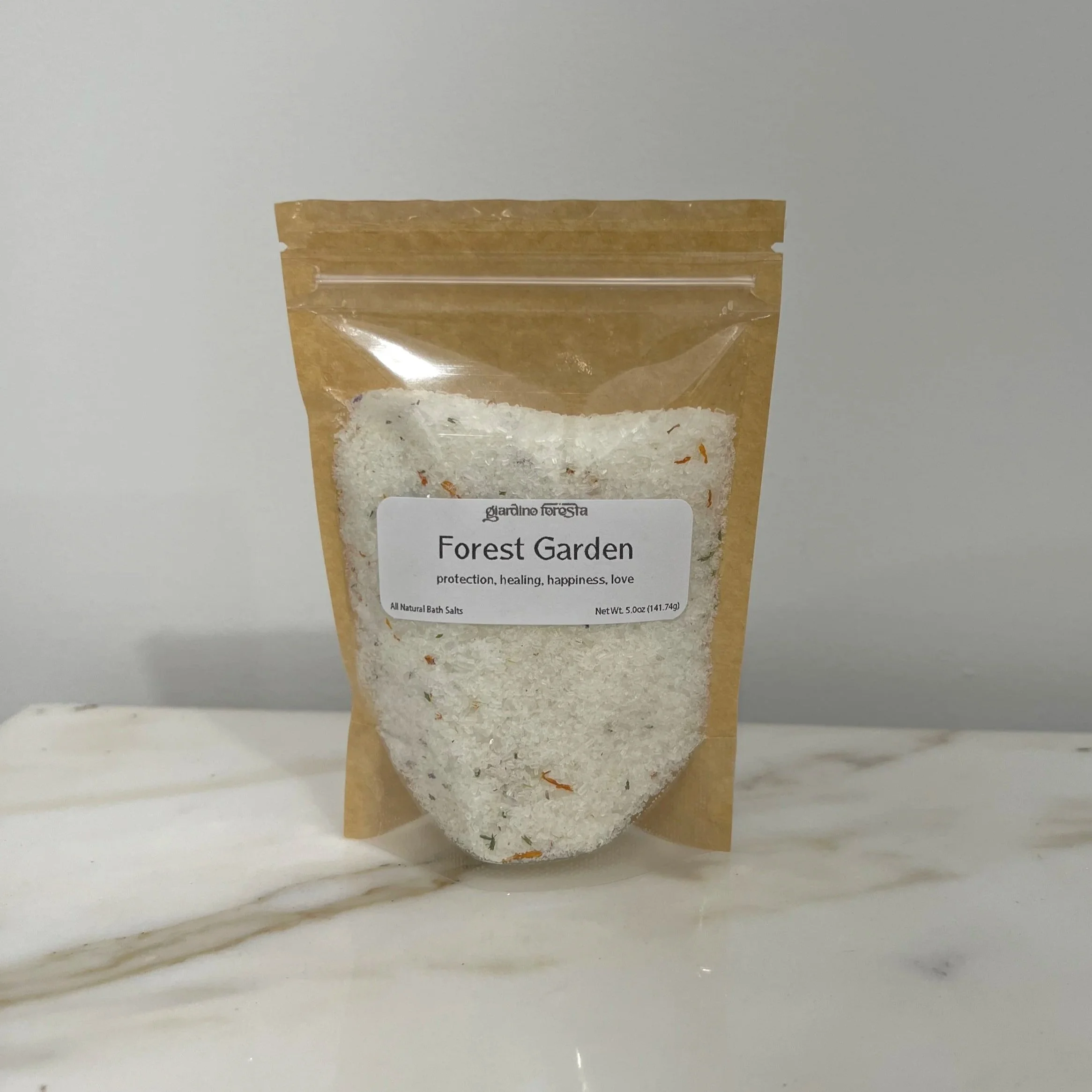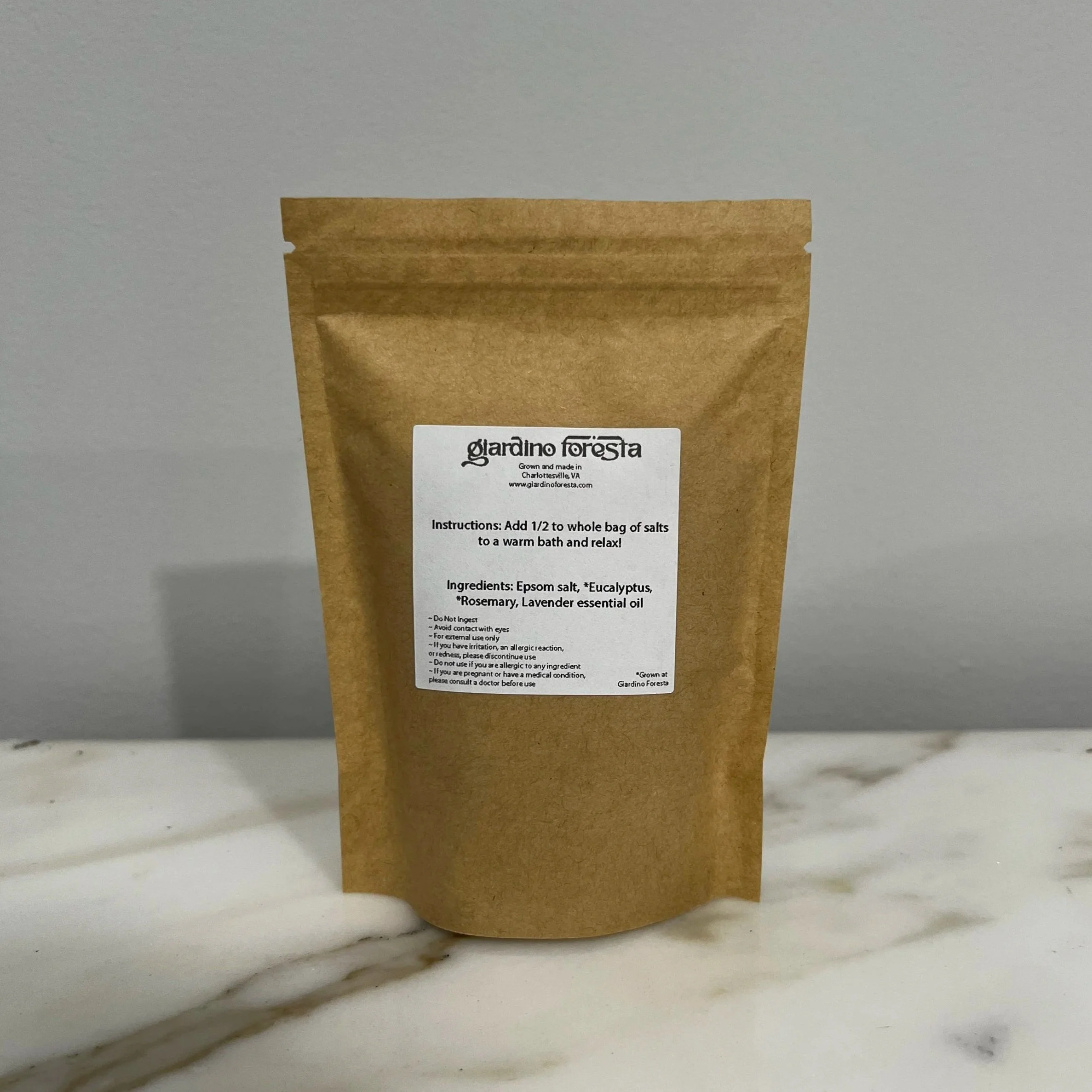 Most of the herbs are turned into these luxurious bath salts. Any high-quality petals are collected in organza bags.