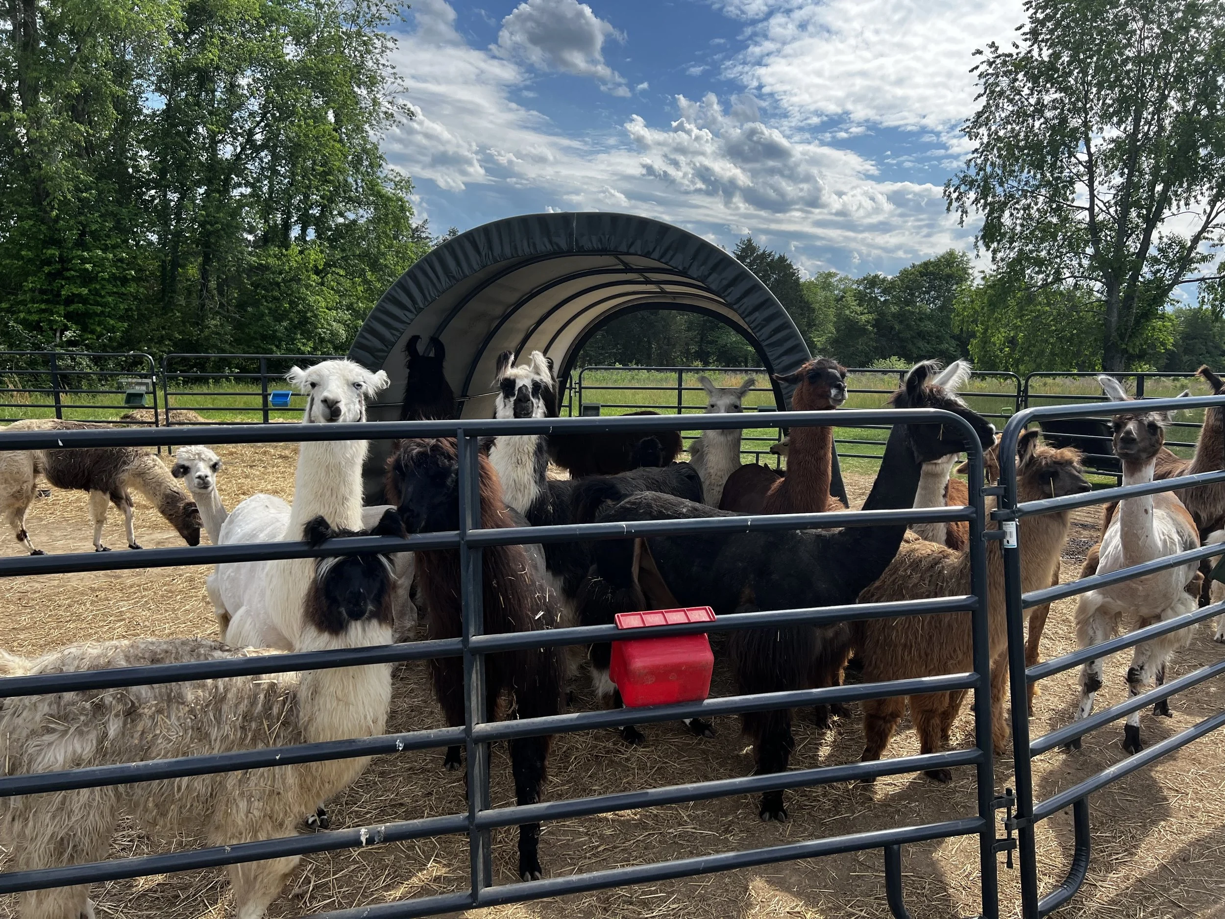 We took a trip to get some “llama beans” (a.k.a. manure) from our friends at Lower Sherwood Farm. I can’t tell you how happy I was to be absolutely surrounded by llamas! There’s something about them… I mean, look at those faces! The super social ones that they take to shows are trained to ask for kisses. So now I can say that I’ve been kissed by a llama. I didn’t realize that was on my bucket list until it happened.