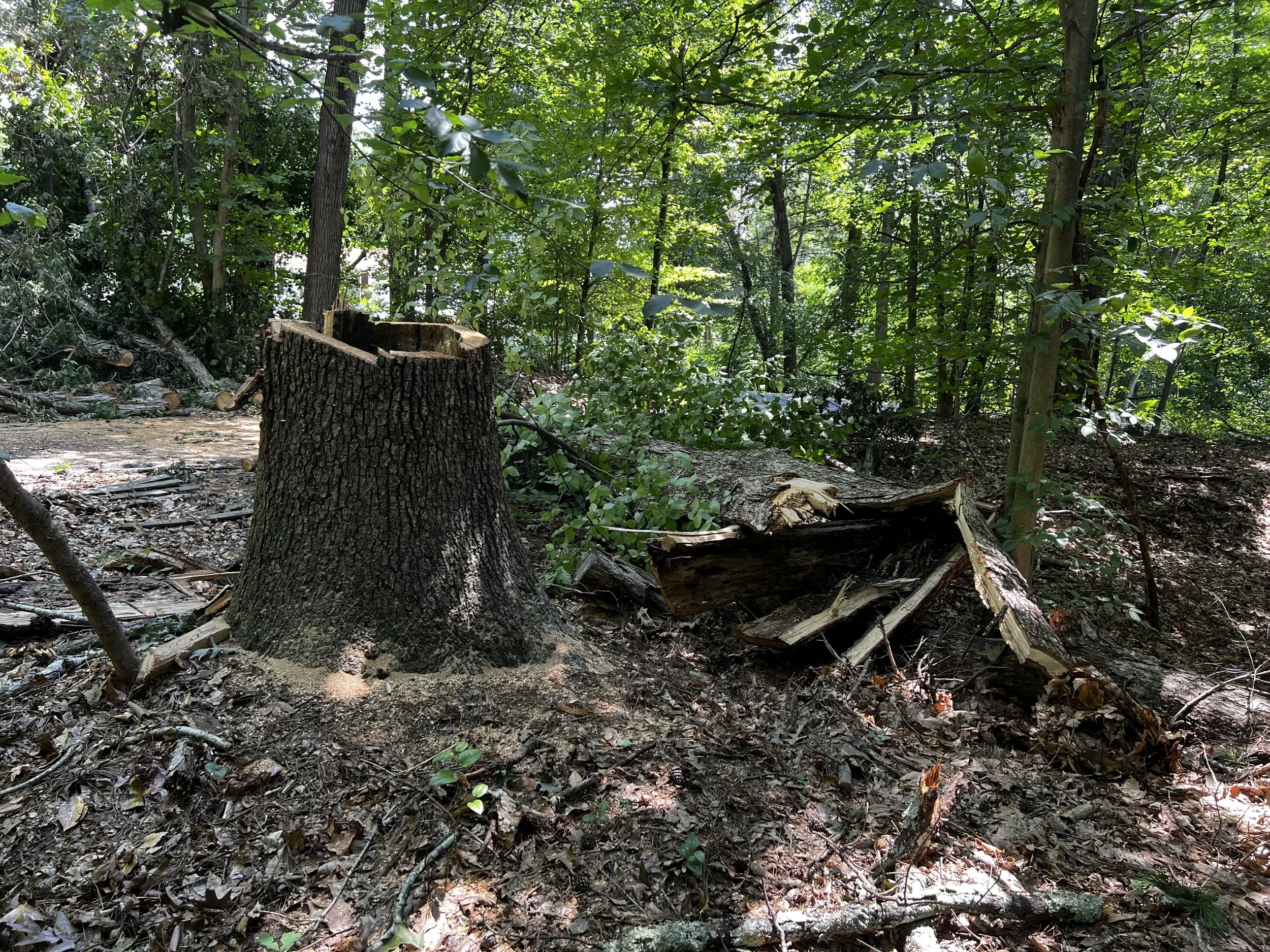 This one dropped a huge limb a few years ago and is completely hollow (as you can see by the stump and remnants). I’m so glad this wasn’t near anything! Just blocked our driveway for a couple days.